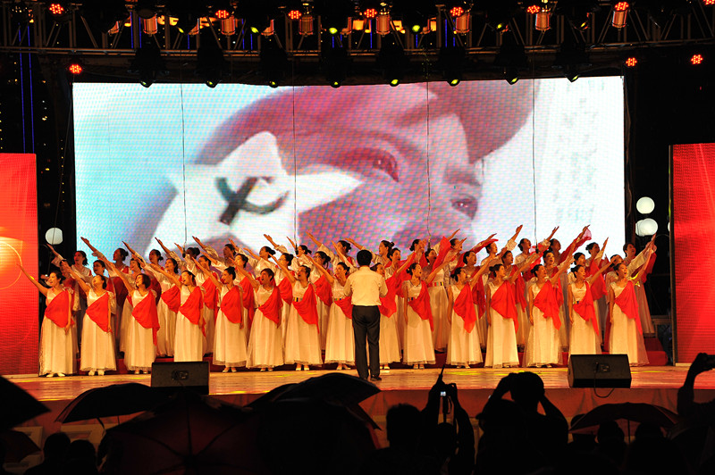 2013年“三.八”妇女节晚会上,我院合唱队演员们为…