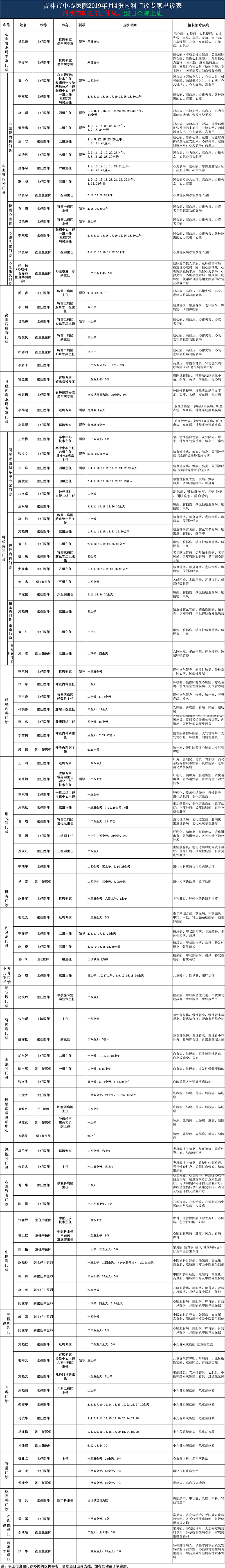 吉林市中心医院2019年4月内科门诊专家出诊表