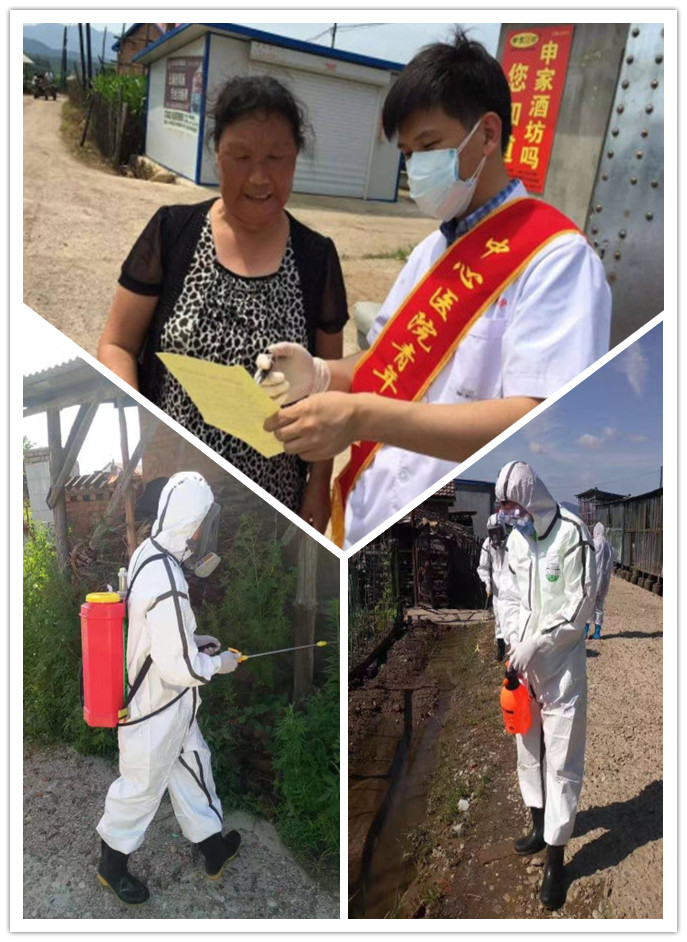 在医院众多医疗救援队中有这样一支队伍,虽然他们年轻,但他们也日夜奋战在医疗前线,在职责的感召下,他们自愿加入其中,他们是中心医院的青年志愿者们。他们顶着烈日、趟着泥泞的路,穿着不透气的消毒服、背着几十斤重的消毒箱穿梭于各村屯。有些受灾较重的村屯车子开不进去,他们就徒步三四个小时走进去,即使双脚已泡得发白也没有一句怨言。哪里需要帮助他们就出现在哪里,哪里受灾严重他们就赶到哪里。他们一路宣教灾后防疫知识,一路为灾区进行防疫消杀,为当地居民提供了健康保障,受到了群众的广泛赞扬。