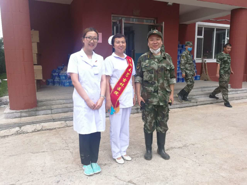 闫春莲,中心医院疼痛科护士长,也是这次医疗保障队的队员;邹琰,中心医院人事科干事,中心医院医疗保障的青年志愿者;吴科霖(邹琰爱人),武警吉林市支队司令部通信科参谋,本次灾后救援的武警官兵。一家三口代表着三个救援队伍赶赴受灾前线,三个人、三个身份、三份奉献、却肩扛同一份责任。