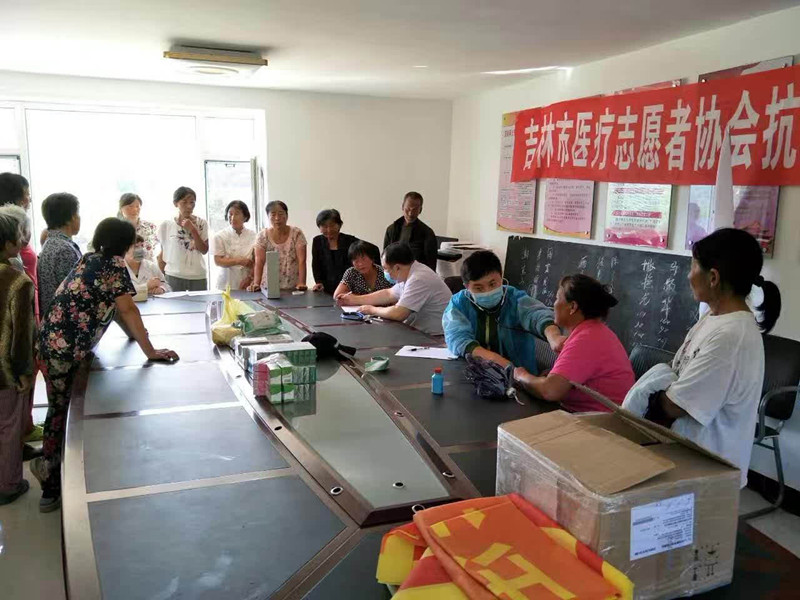 7月17日,在市委、市政府的统一部署下, 吉林市医疗志愿者协会(以中心医院为发起单位)第一批志愿者进入受灾严重的丰满区旺起镇进行消杀工作,这也是受灾后第一批进入灾区的社会团体之一。