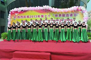 6月14日是第10个“世界献血者日”,中心医院天使艺术团参加了由市卫生局主办、市红十字中心血站承办的2013“世界献血者日”无偿献血公益演出活动,此次活动是医院天使艺术团首次对外为江城父老表演节目。