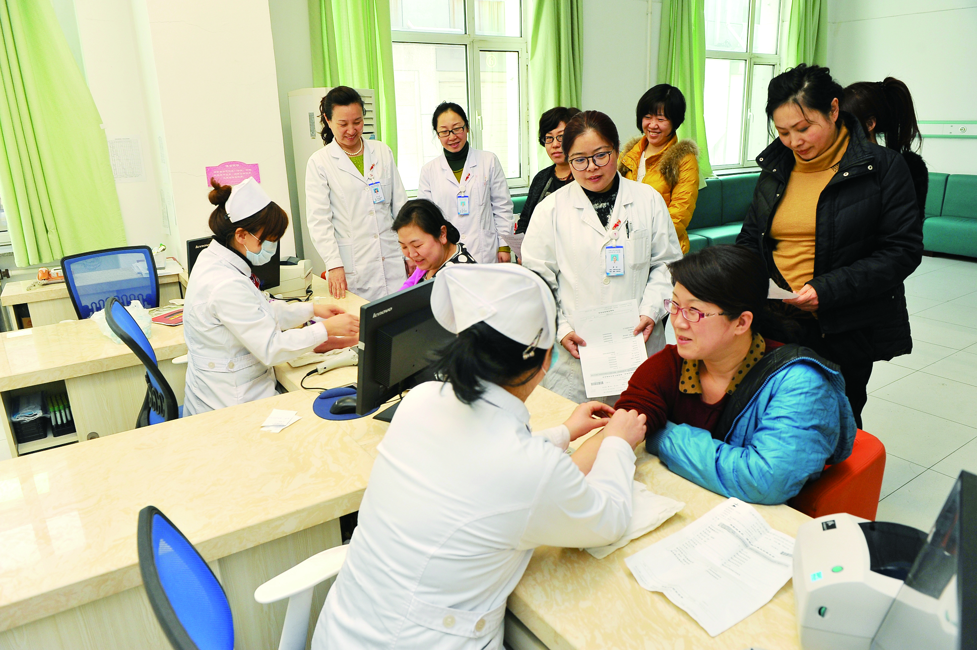外三分工会主席夏明霞与医技一分工会主席黄丽组织职工参加健康体检。