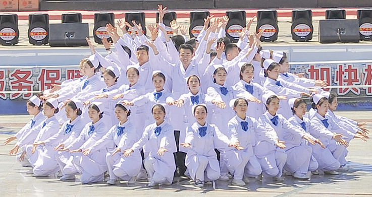 “我们的心凝结着忠诚,我们用爱书写神圣……”随着中心医院院歌《飞扬的生命》音乐悠扬地响起,60名医务工作者集结在广场中间翩翩起舞,虽然他们不是专业的舞者,但白衣天使们个个自信满满、笑容明媚、舞姿激情绽放,将社会主义核心价值观的精髓、医院精神和医院文化有机结合,既体现了行业特色,又充分展现了中心医院人的艺术修养、健美体魄和奋发向上的精神风貌。我院表演的节目场面之宏大,气势之磅礴更是引得观演群众一阵阵欢呼叫好。最后,全场共同跳起社会主义核心价值观工间操《世纪的约定》和《全健排舞大家跳》,活动在热烈气氛中圆满落幕。