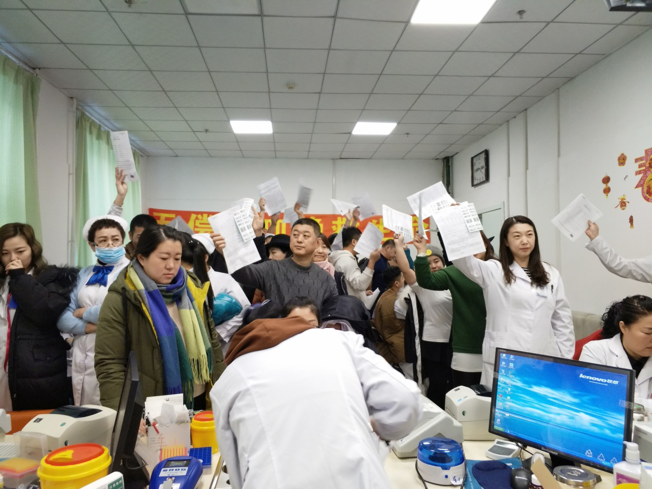 献血者来自支部的各个科室,她们有刚刚下夜班的护士、有工作任务繁重的医生,有今年新入党的预备党员,还有献血数次的科主任、普通职工……整个填表登记、测血压、排队化验过程始终都在一种轻松、愉快的氛围中有序进行。