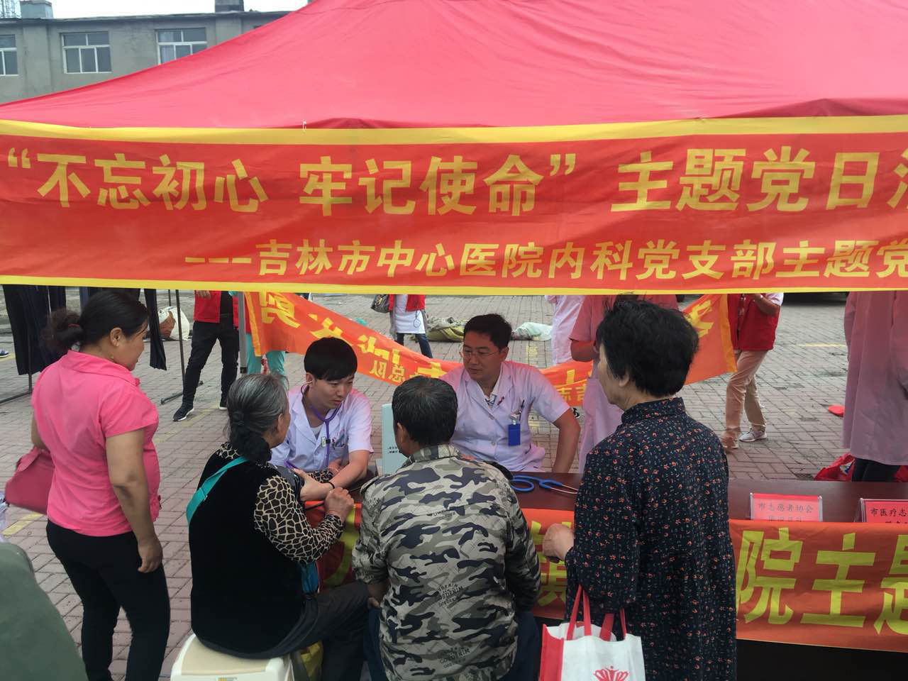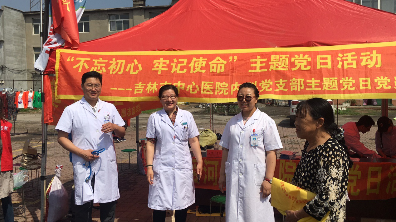 2018年6月6日,支部联合 “不忘初心 牢记使命”主题党日活动,一线临床党员医生到船营区大绥河为村民义诊服务。