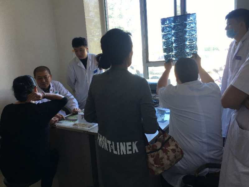 根据当地的疾病特点,此次义诊于崇龙主任还特别邀请了脑血管诊治中心的尤凤华主任、心血管诊治中心的詹景东副主任共同出诊。诊疗过程中,中心医院的医生得到了当地百姓的一致认可,前来就诊的百姓有百余人之多,各位专家们不辞劳苦,出诊近四个小时,切实为当地的百姓发现了并明确诊断相关的疾病。有几例重症病人更是得到了及时救治:于崇龙主任为一位腰椎重度滑脱的病人明确了诊断,提供了手术方案;江劲夫主任为一位股骨颈陈旧性骨折的病人明确了诊断,提供了手术方案;尤凤华主任发现了一位脑血栓前期的病人,并给与了及时的诊治。詹景东主任为一位突发的心梗的病人,进行了及时处置后,联系我院胸痛中心,成功抢救了病人的生命。