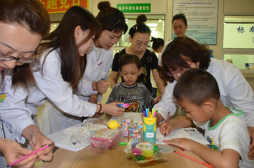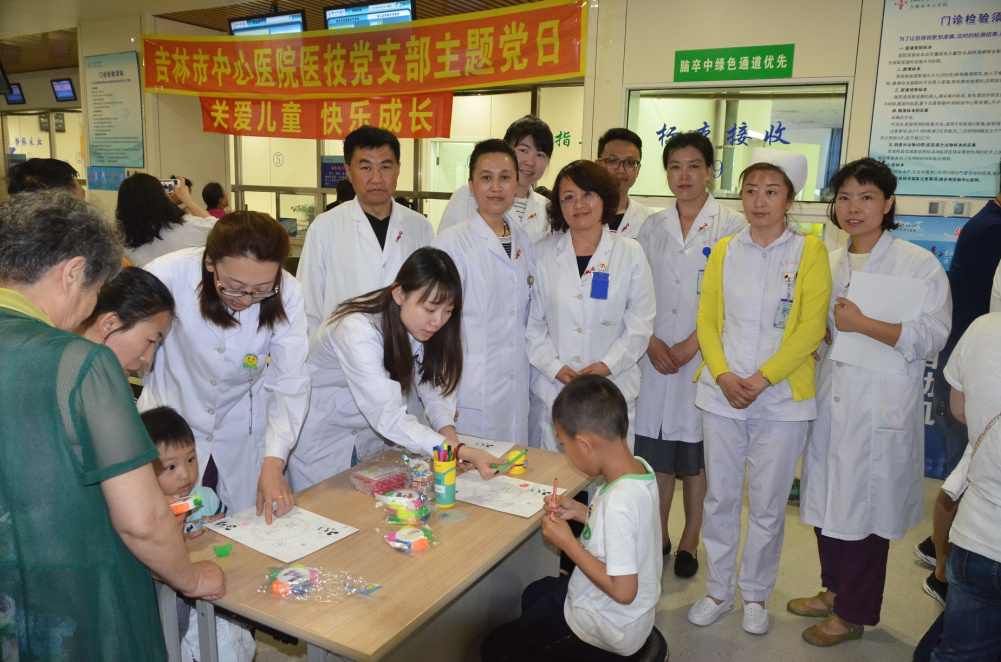 2018年6月1日,医技二党支部在医学检验中心指尖血采集窗口前,开展了“关爱儿童,快乐成长”的儿童绘画活动。