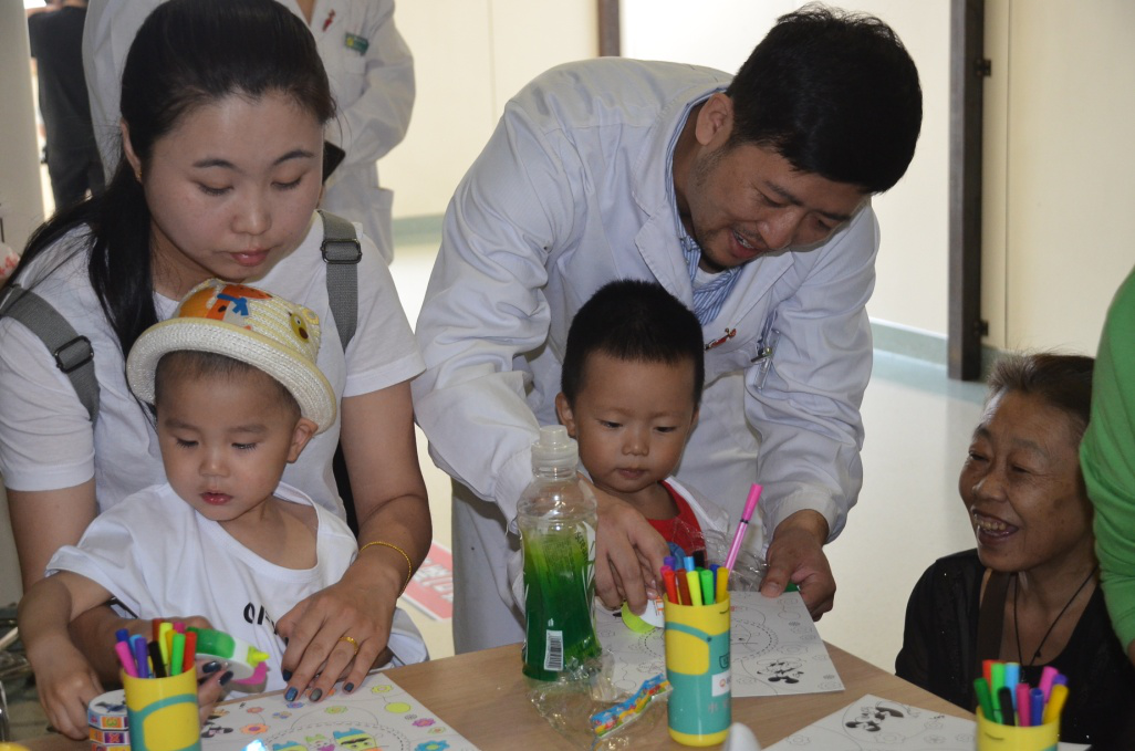 活动前,各党员大力宣传,让在指尖血采集处等待采血的孩子们来到活动绘画桌前,用早就准备好的画笔,发挥孩子们丰富的想象,绘出一幅幅可爱的画卷。