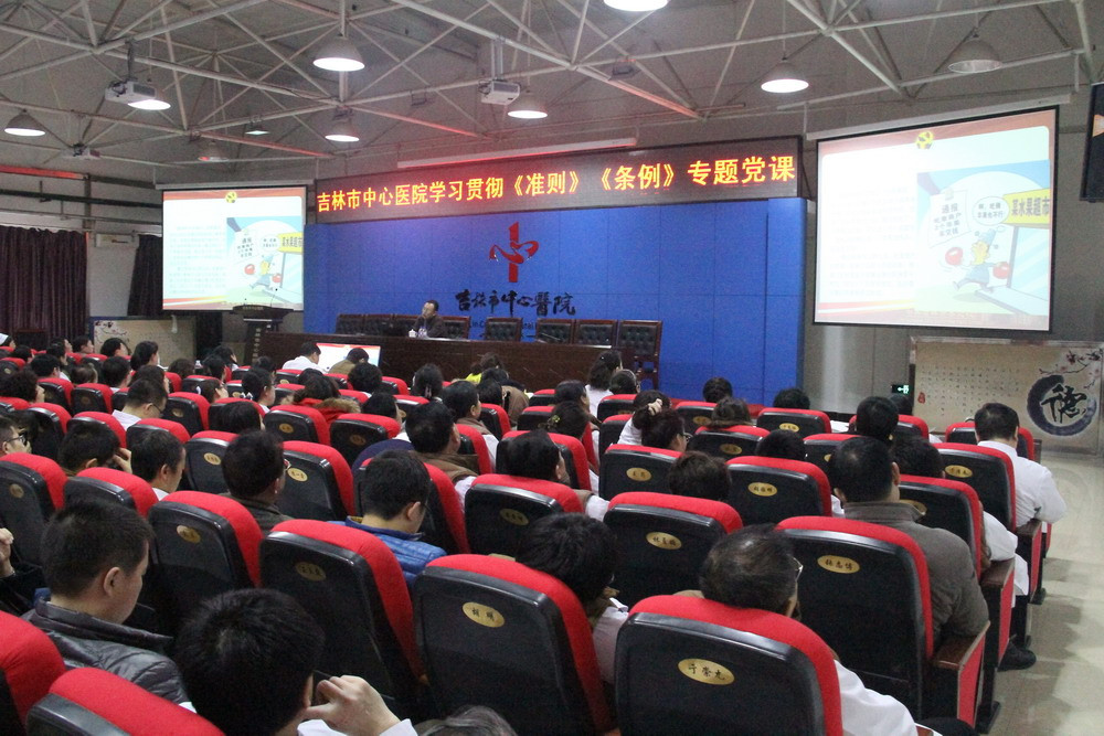 12月25日,吉林市中心医院邀请市委党校王宇副校长为全院党员干部、党积极分子上了一堂学习贯彻《中国共产党廉洁自律准则》《中国共产党纪律处分条例》的专题党课。王宇副校长以《全面从严治党的“双保险”——〈廉洁自律准则〉〈纪律处分条例〉精神解读》为主题,用鲜活的事例,准确的语言,深入浅出地讲解了颁布实施新修订的《准则》和《条例》的重要现实意义,《准则》和《条例》的主要内容和特点,如何深入学习领会和落实好《准则》和《条例》规定,做遵规守纪的“明白人”,有着很强的针对性和指导性。为了让党员干部都能听到这次党课,医院除主会场外,特地增设了分会场。全院600多名党员干部认真聆听,做好记录,深刻领会,进一步增加了对《准则》和《条例》内涵的了解、精神实质的把握,明是非、强信念、守底线、促担当,对学习好贯彻好《准则》和《条例》起到了很好的促进作用。
