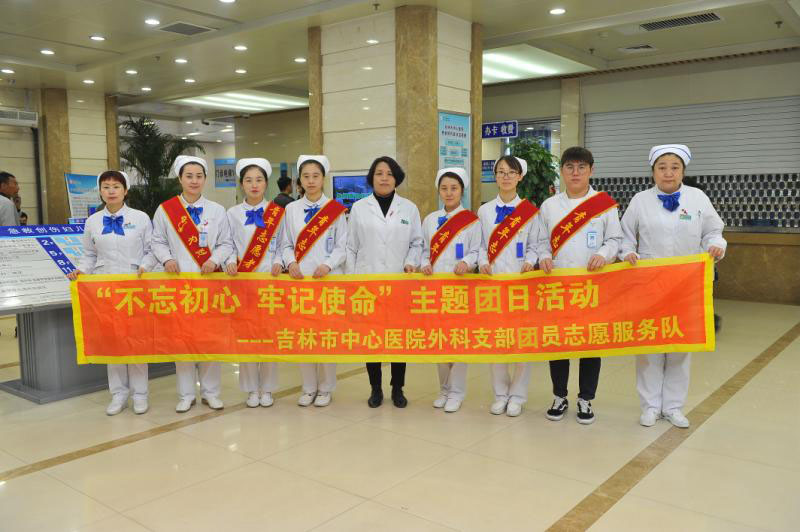 为纪念五四青年节,弘扬五四精神,展现团员青年风采,2018年5月4日上午,在医院团委的大力支持下,外一团支部组织团员在我院门诊开展了导诊志愿服务主题团日活动。 外一党支部书记冯雪梅、青年委员周晶共同出席活动,并与团员青年一起为病人进行导诊志愿服务。活动前,党支部书记冯雪梅进行了动员,她鼓励团员青年奋发图强,积极向上。要以导诊志愿服务活动为载体,牢记全心全意为病人服务的宗旨,不忘初心,牢记使命,为医院建设和发展贡献青春和力量。