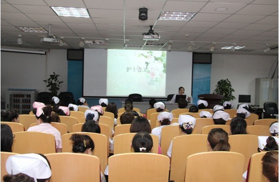 图四:妇产科疾病诊治中心主任谢华为N2护士做妇产科知识培训