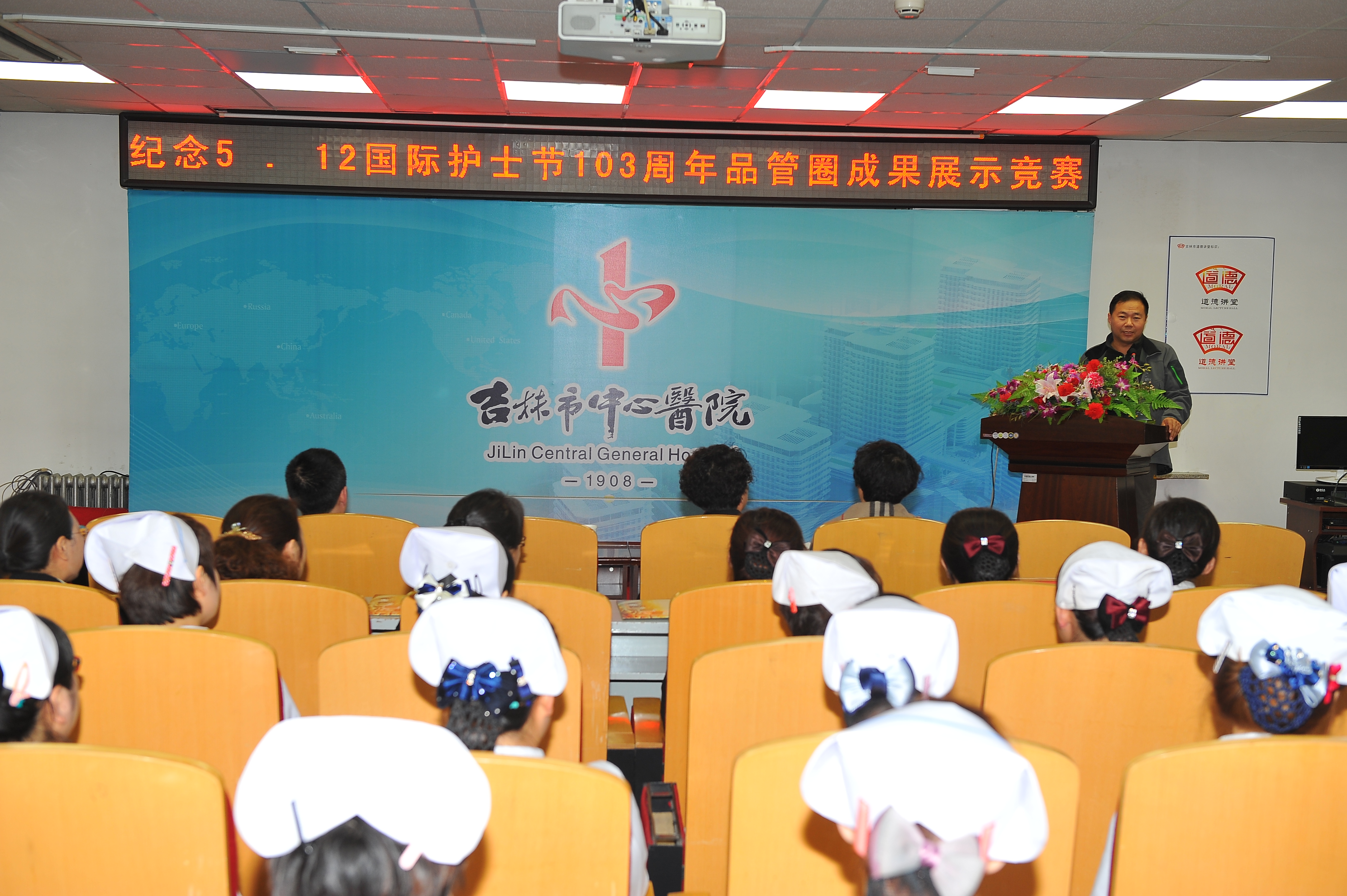 5月6日下午,吉林市中心医院在512国际护士节来临前夕,为进一步推动护理工作的发展,弘扬南丁格尔精神,展示护理人员良好精神风貌,医院护理部联合院工会组织的全院品管圈成果展示竞赛,在吉林市中心医院机关五楼会议室拉开了序幕。吉林市卫生局医政处处长杨庆和、副处长李文生、护理专干尹红新莅临开幕式现场。杨庆和处长做重要讲话,他指出:“品管圈”是一种科学的管理工具,是全员参与质量管理的一种好的载体,通过开展“品管圈”活动,深入推进医院优质护理服务工作开展。