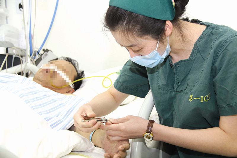 护士正在给患者剪指甲