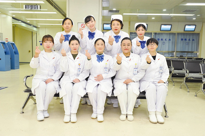 每天8小时不间断的站立式服务,她们站僵了双腿却僵不住笑容。她们用热情与专业让这些枯燥琐碎的工作变得有态度,更有温度,患者们都夸她们是“爱心小百科”。护士长金振鑫更是想出用黄色警示围栏合理划分候诊区、检查区和在屏风帘上刺绣“检查中、请勿进”提示标语的办法提醒患者就诊流程。经过实践,这不仅为患者提供舒适的就诊环境,也为医生提供了安静的诊疗空间。