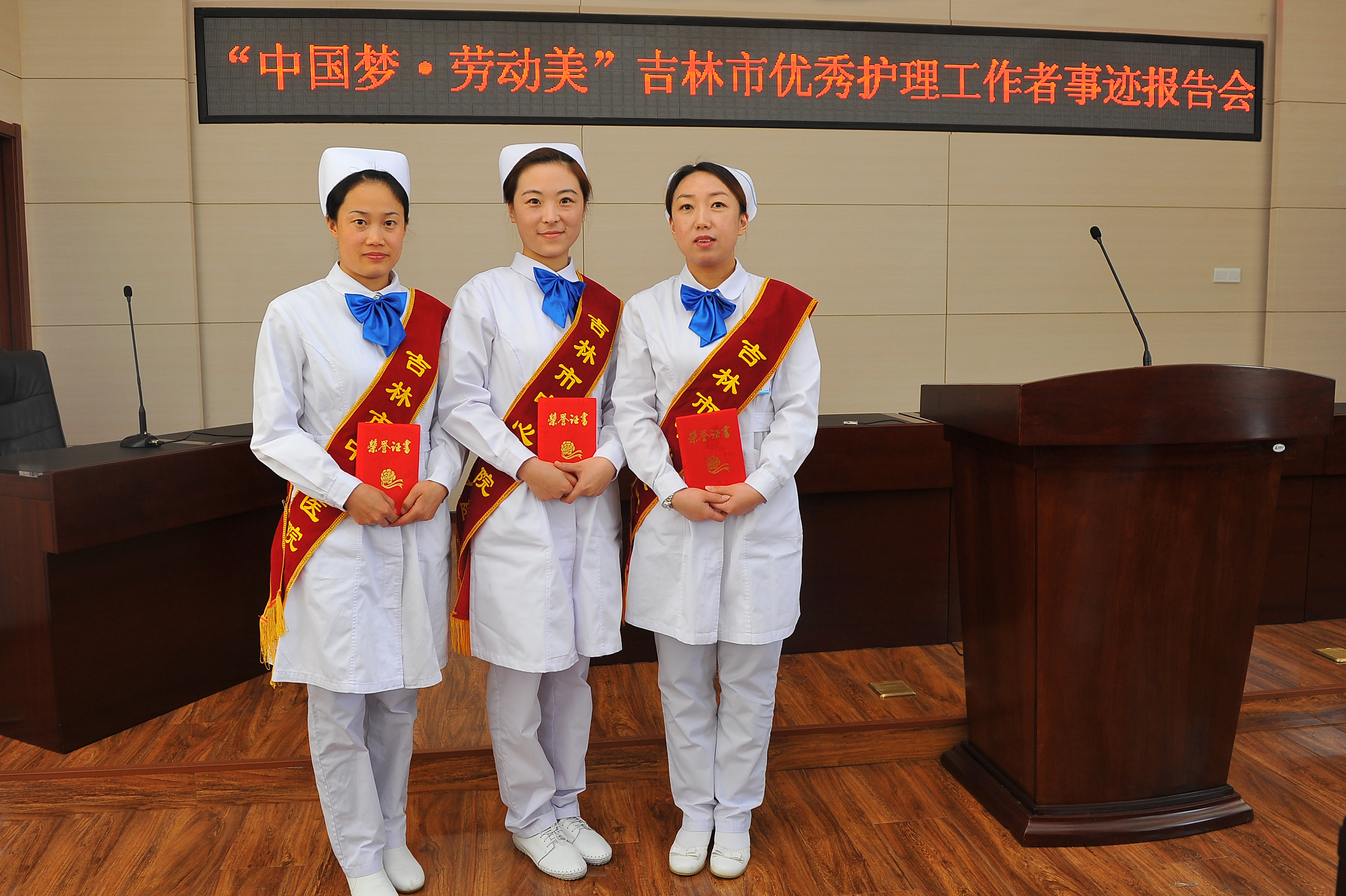 5月9日在第103个国际护士节到来之际,吉林市教科文卫体系统工会、吉林市卫生局党委办公室在市总工会会议厅联合举办“中国梦、劳动美”优秀护理工作者表彰大会暨先进事迹报告会。会上对在全市护理岗位上涌现出的32位优秀白衣天使进行了表彰。