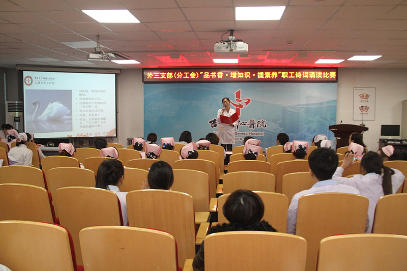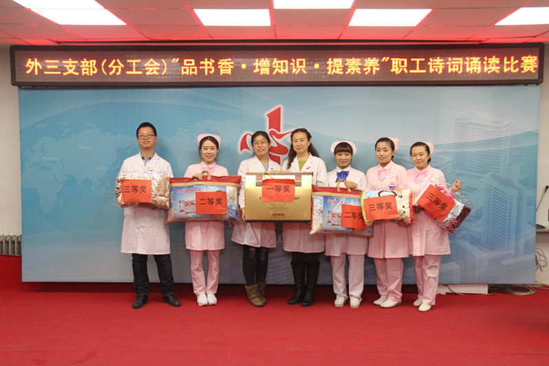 12月3日下午,外三党支部在机关五楼会议室举行了职工诗词诵读比赛。外三党支部高度重视此次活动,在医院党委、团委、工会的大力支持下,支部各科室主任、护士长及青年职工代表积极响应,120余人参加了此次活动。