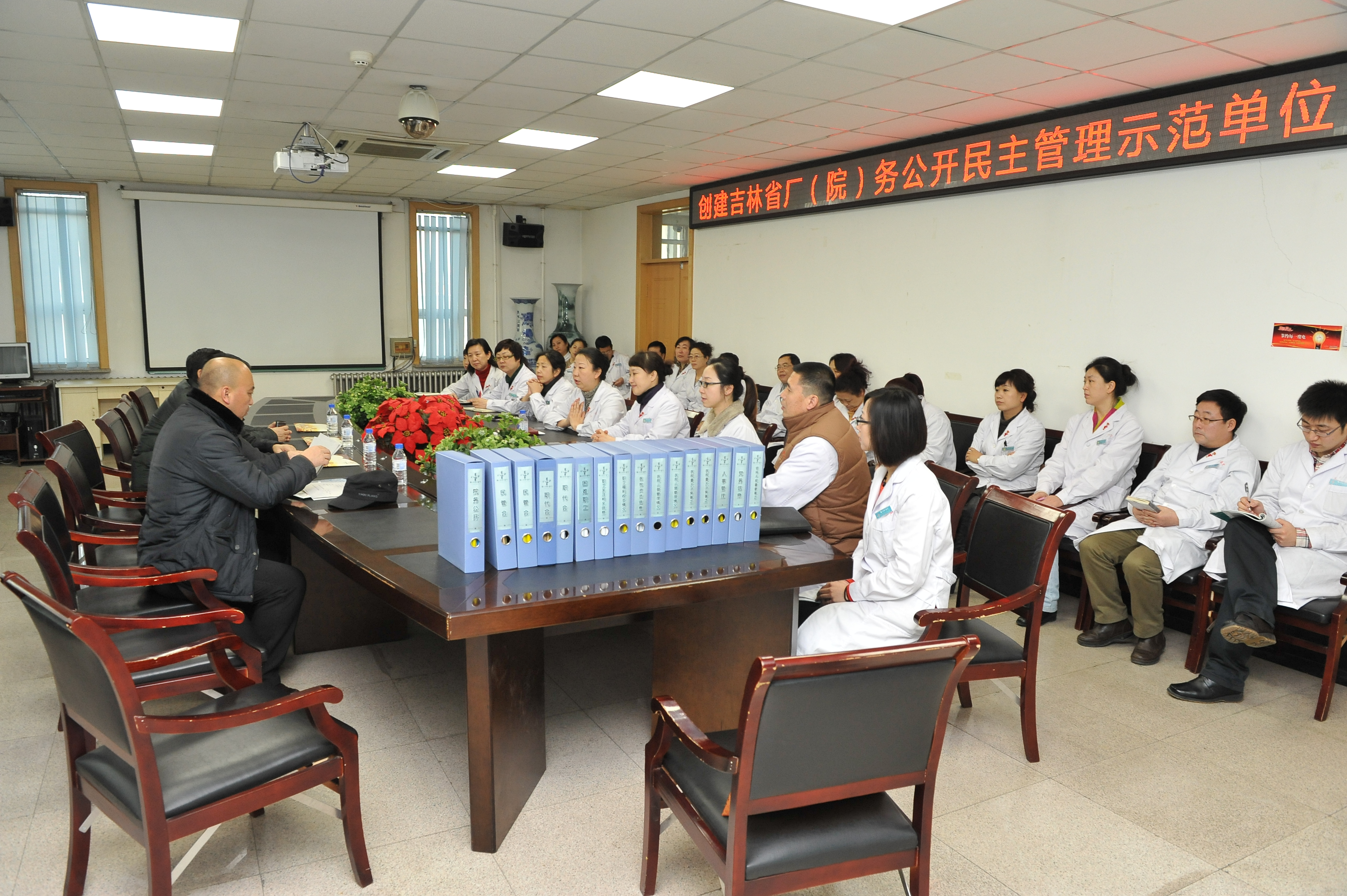 12月6日,吉林省创建厂(院)务公开民主管理示范单位评审组莅临我院,对我院的创建工作进行评审检查。本次评审检查采取现场听取汇报、查看院务公开材料及职工代表现场打分等形式,对我院院务公开工作进行全面的检查和评审。