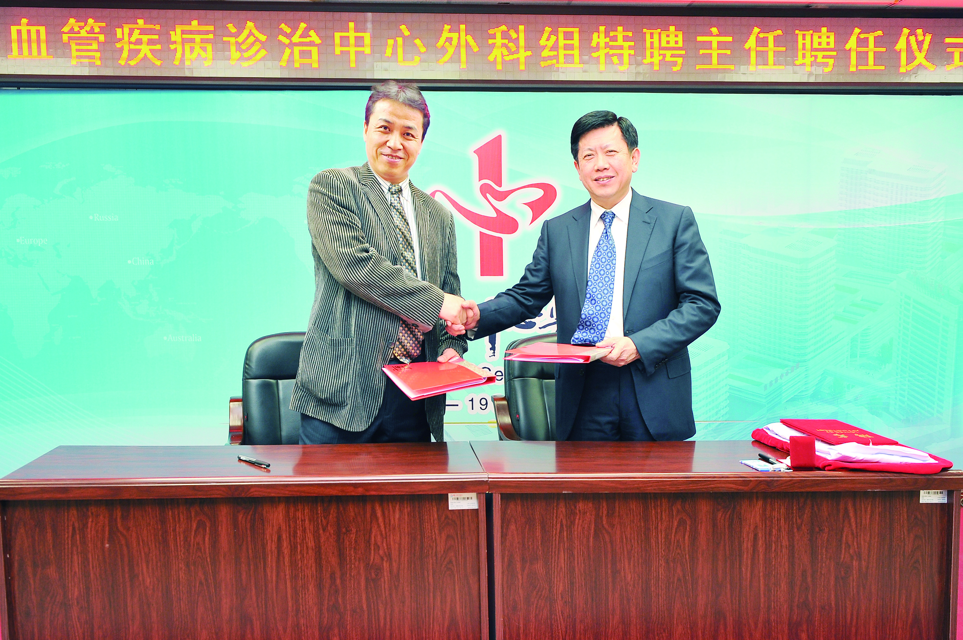 4月10日,吉林市中心医院首次在心血管疾病诊治中心外科组开展双主任制,聘请吉林大学第二医院心血管外科柳克祥主任为特聘主任(详见专家小传)。在当天的聘任仪式上,中心医院院长钱大为向柳克祥主任颁发聘任证书,并为柳克祥主任佩戴了医院文化徽章。