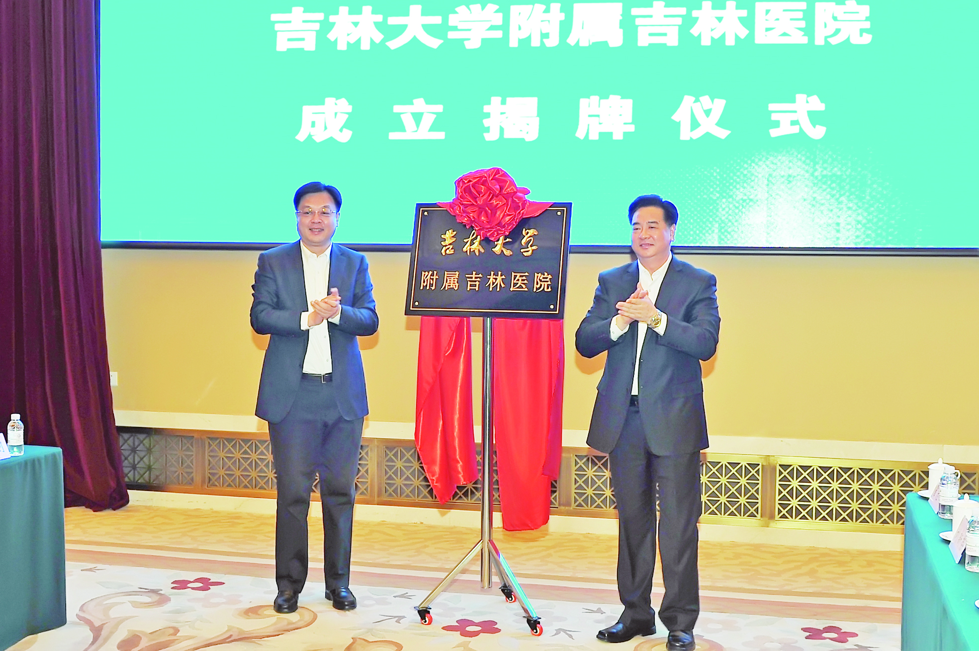 赵静波市长(左)与李元元校长共同为吉林大学附属吉林医院揭牌