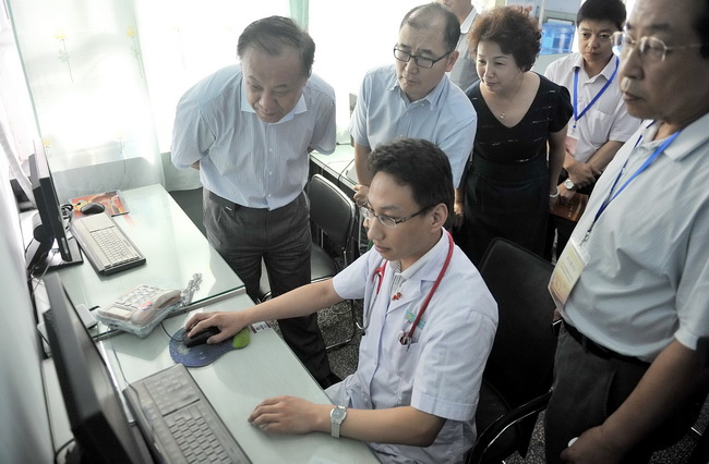 最后,与会领导和同志到吉林市中心医院进行了现场参观。吉林市中心医院医护人员向与会同志分别介绍了他们开展电子病历、临床路径与DRG管理,信息化与护理管理、信息管理,信息化与绩效管理的经验。