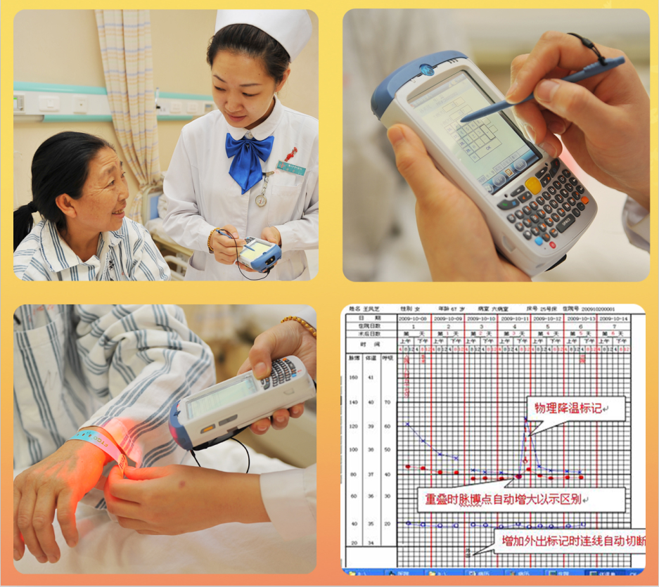 移动护理站,让护士与患者的关系更加密切。护士每天测量完病人的体温、脉搏、血压等,都录入电脑,在电脑上自动形成曲线,并按时段图形显示,病人的生命体征一目了然。通过手机接收信息,患者的信息从护士站带到了病床前,护士只需要用手机扫一扫患者腕带和药瓶瓶贴,就可以确认患者身份,核实医生的用药、检查、治疗等指令,同时患者的生命体征等基本信息也随即直接录入系统,保证了护理记录的准确性。