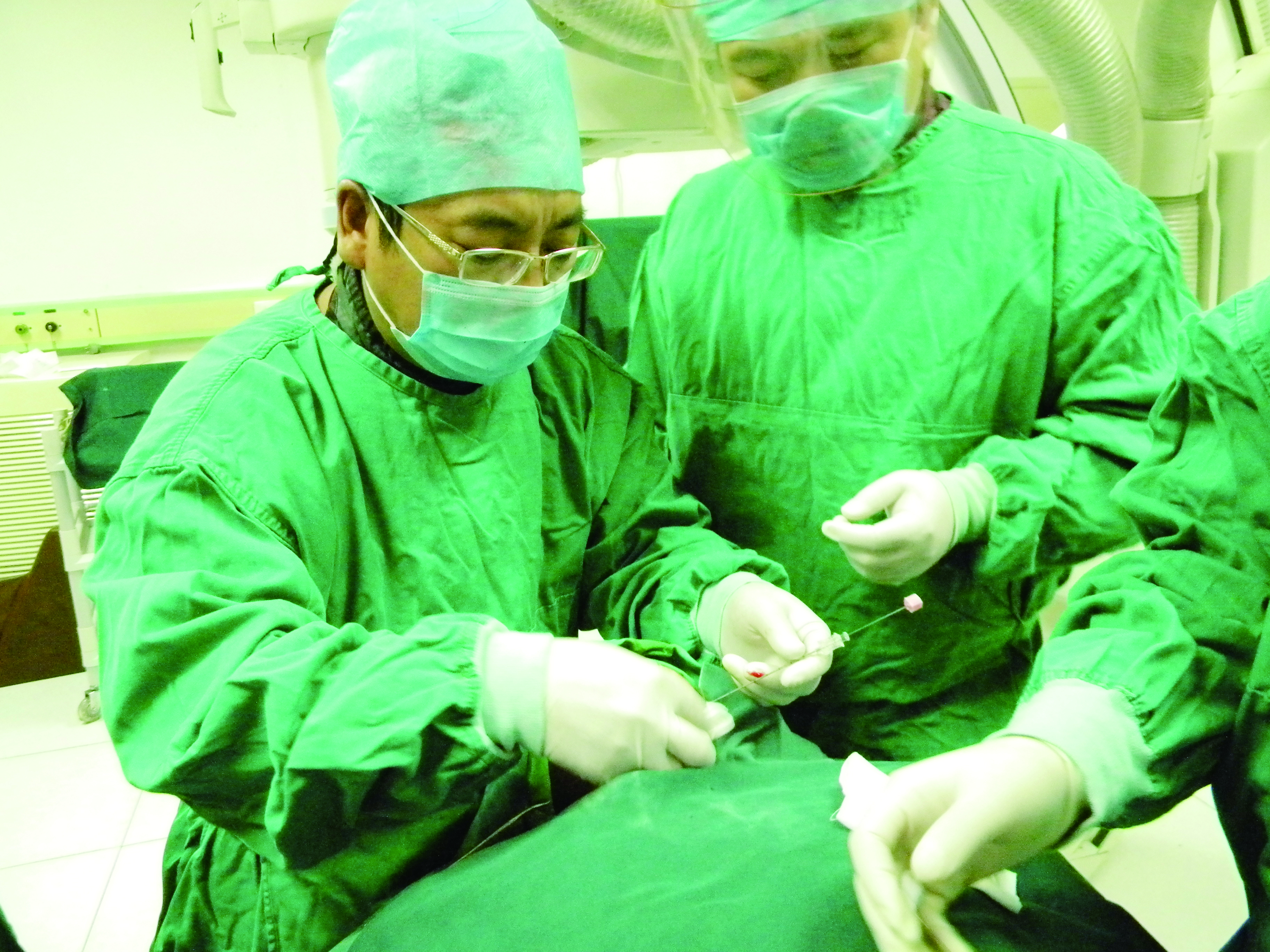 李勇猛主任(左)正在为患者行经皮粒子植入术
