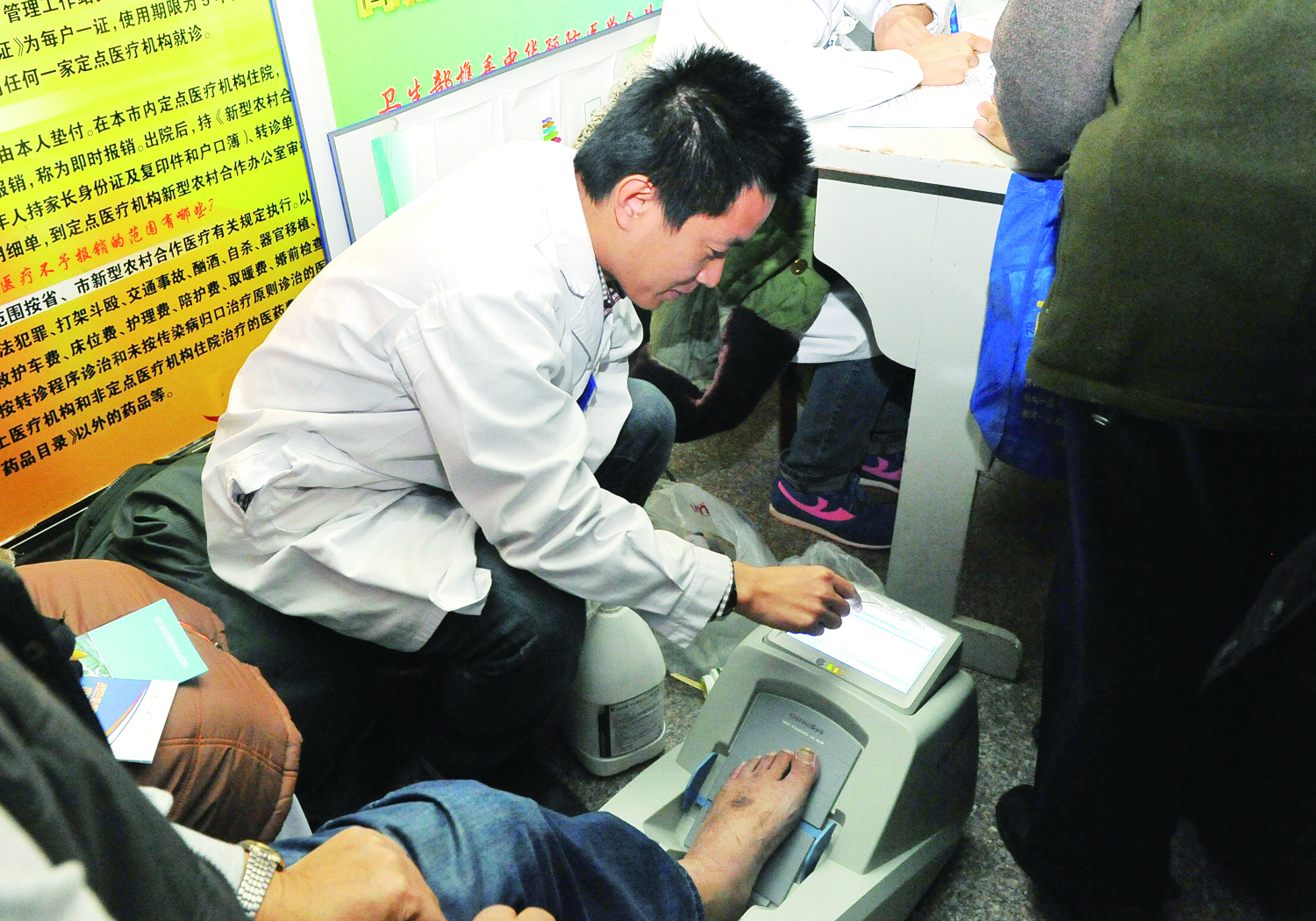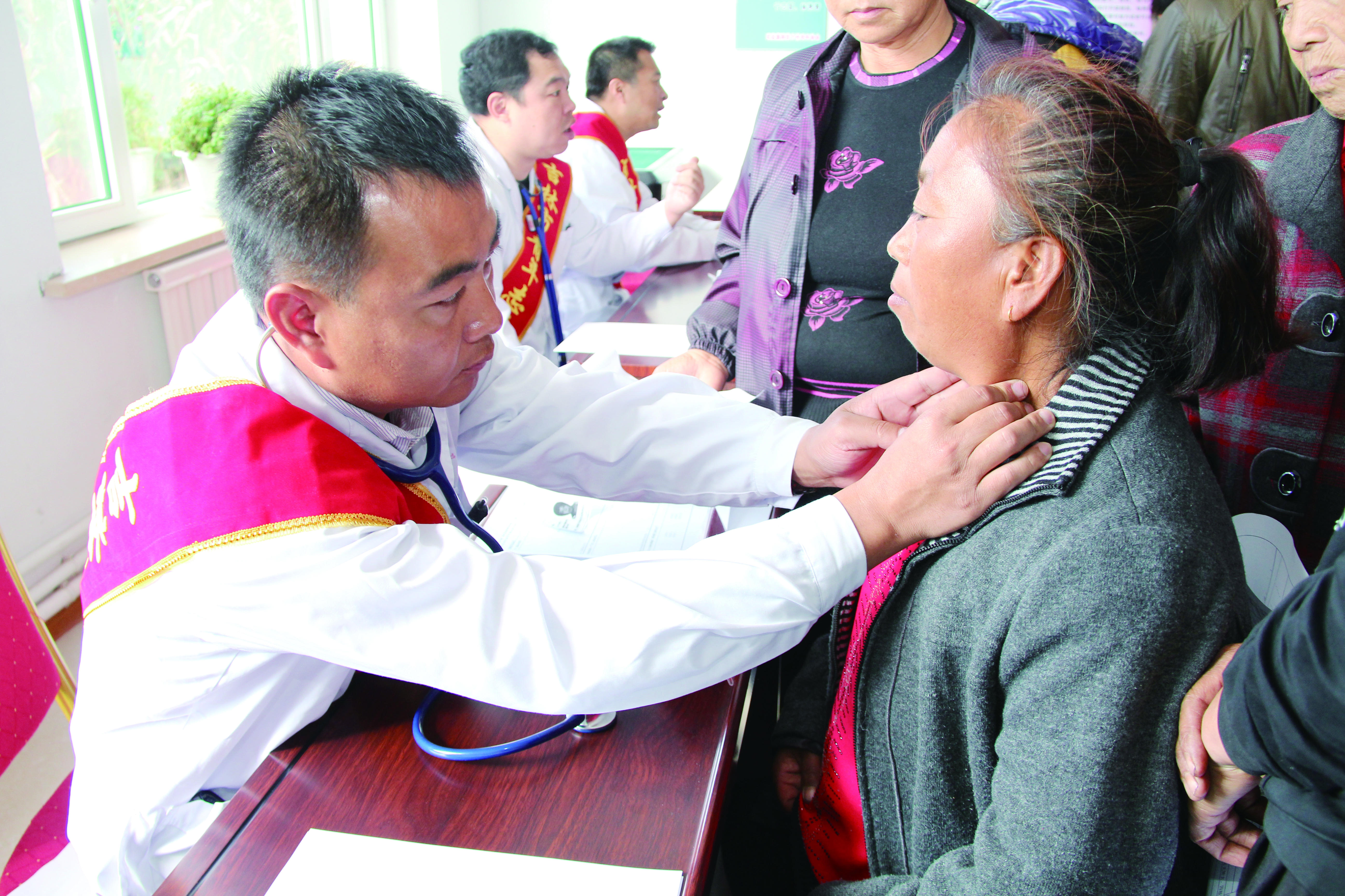 9月29日,由吉林市中心医院青工委副主任张杨发起“暖心行动”,为丰满区两家子村200余名村民免费义诊,并在村卫生室建立吉林地区首个医疗志愿者服务站。此次行动40余名青年志愿者参加。图4为青年志愿者医生正在为村民详细检查。