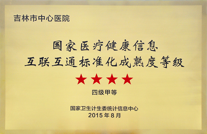 8月6日,2015中国卫生信息技术交流大会在苏州召开。吉林市中心医院副院长王建东代表医院受邀参加并在会上接受了国家卫生计生委授牌。本测评等级共分为五级,因五级还没有测评细则,目前全国医院所通过的最高等级为四级,达到四级甲等标准的医院全国仅有5家。