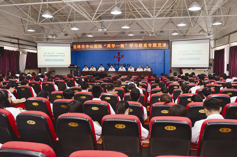 6月13日,为深入开展好“两学一做”学习教育,吉林市中心医院院长钱大为,在医院综合教学楼会议室,以《坚持“两学一做”,严格守纪担当,做一名合格的中国共产党党员》为题,为院领导班子、全体中层干部、护士长、中青年骨干、党员、积极分子代表450余人上了一堂生动的专题党课。