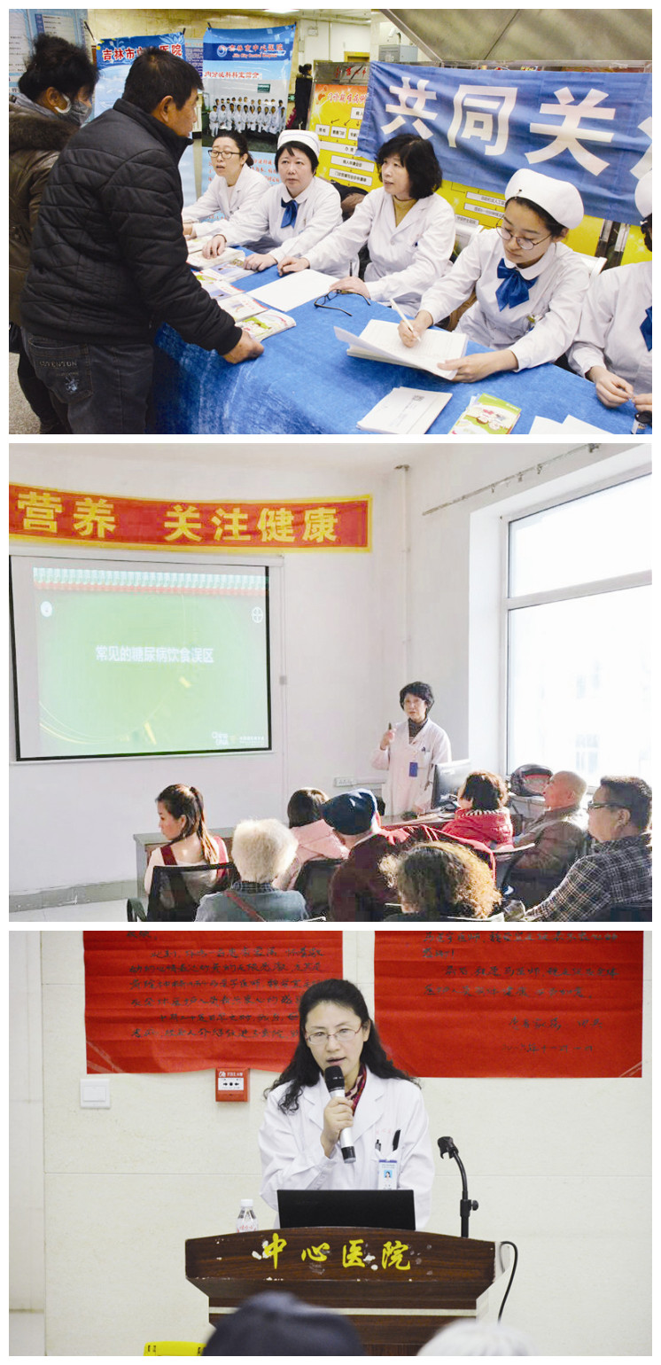 11月14日是世界糖尿病日,为了更好地宣传糖尿病相关知识,强调糖尿病可防可控的理念,吉林市中心医院内分泌诊治中心1组主任赵银玲、2组主任李嘉萍、3组主任赵瑛分别在世界糖尿病日前后举行了丰富多彩的活动,希望通过义诊、讲座,让众多糖尿病患者能够了解糖尿病,在控制体重、调整血脂的同时,纠正不良生活习惯,平稳控制病情,延缓并发症。