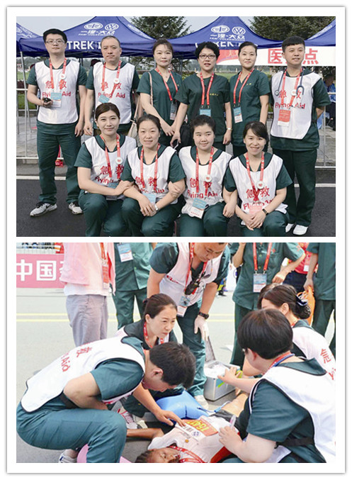 根据吉林市卫生计生委的医疗保障要求,医院设置2个保障点(现场、医院),4个护理站,其中起终点各1个综合医疗救护站,2.5km和40km处各1个医疗站,副院长李威、岳东民分别在现场及院内两个保障点亲自指挥。25日4:40,李威副院长带领由37人组成的医疗队伍赶赴现场,4个医疗小组分别前往各自保障点位,将急救药品、卫材、医疗设备等物资摆放整齐准备迎战。医院开辟赛事接纳伤员的救治绿色通道,预留充足病床,由岳东民副院长现场指挥,ICU、急诊抢救室及相关科室主任全体待命,时刻准备进行医疗保障任务。