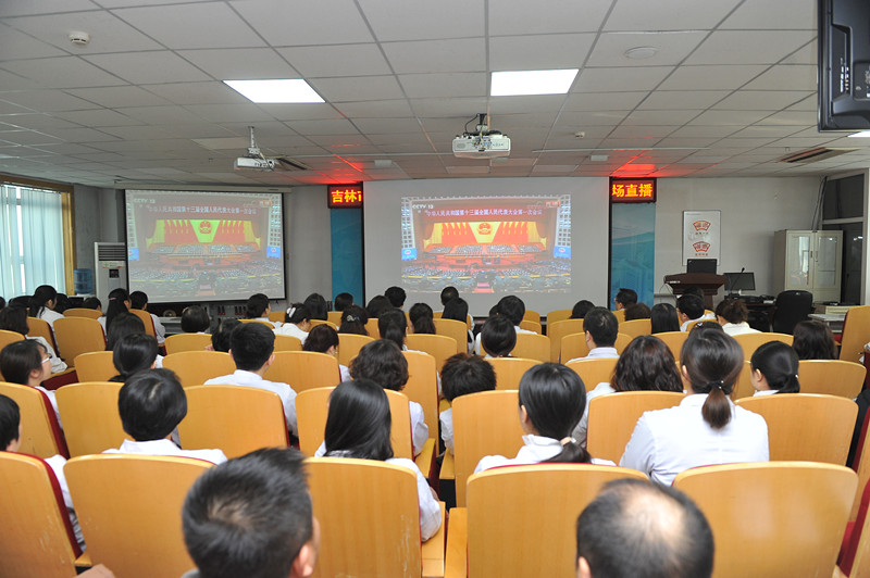 3月5日9时,十三届全国人大一次会议在北京开幕。吉林市中心医院党委及时做出部署,组织重点岗位党员、干部、职工近200人在机关5楼会议室认真收看十三届全国人大一次会议开幕式实况直播,聆听国务院总理李克强所作的政府工作报告,共同感受团结、和谐、奋进的时代脉动。