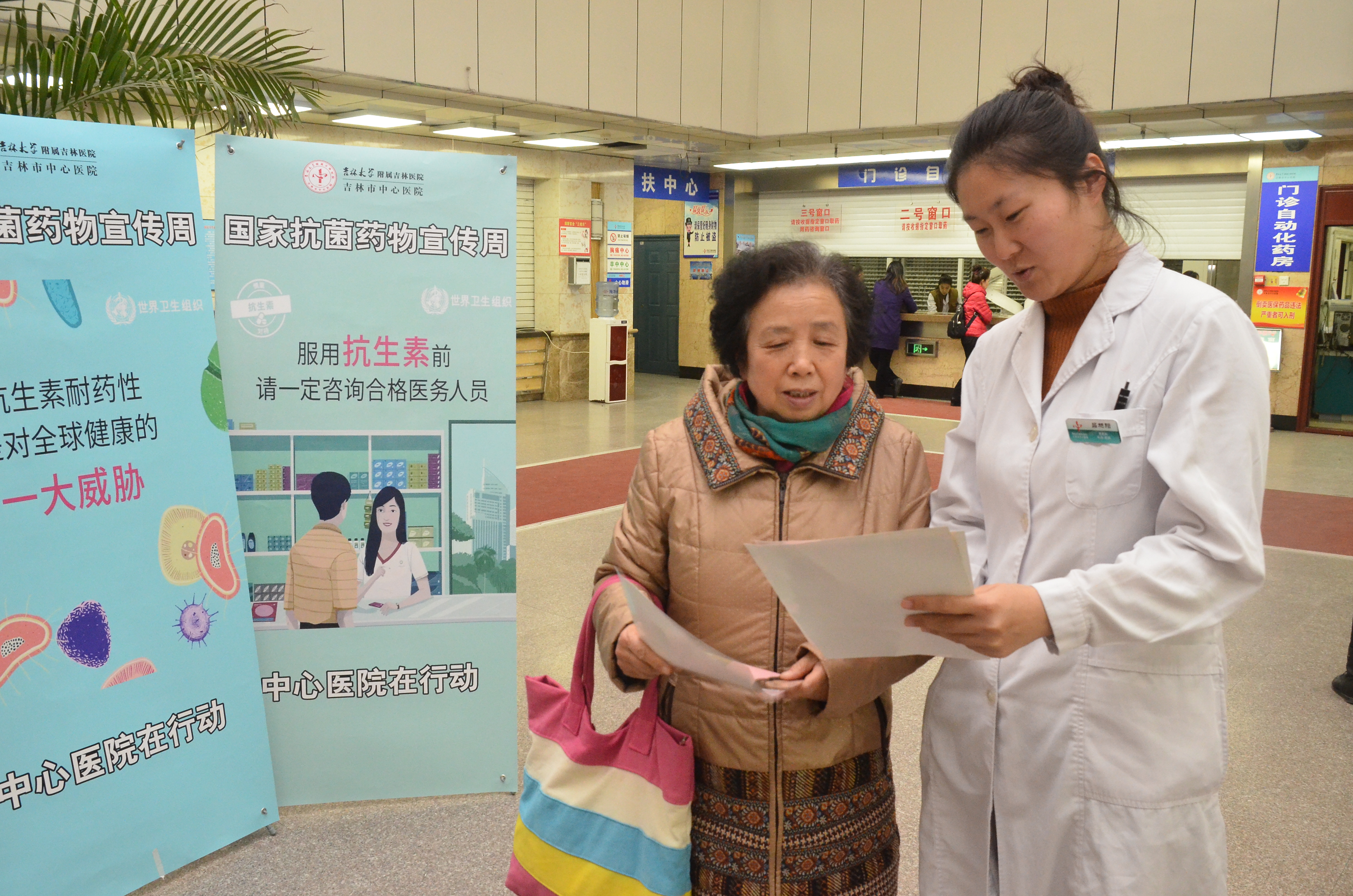 11月16日下午,吉林市中心医院西药科以“遏制细菌,我们在行动”为主题,在医院3号楼1楼门诊大厅举行了关于提高抗生素认识的宣传活动。