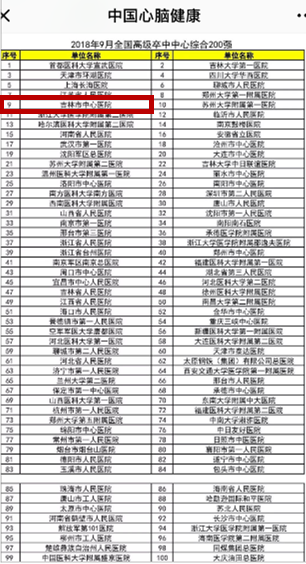 在国家卫生健康委脑卒中防治工程委员会每月发布的全国脑卒中质量指标排行中,中心医院国家高级卒中中心一直高居前沿。在今年9月的报告中,综合200强中中心医院名列第9;静脉溶栓术、取栓术、颈动脉内膜剥脱术、颈动脉支架植入术等技术均名列前茅。