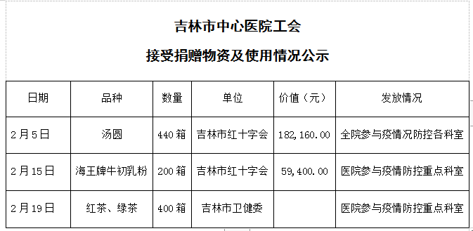 吉林市中心医院工会接受捐赠物资及使用情况公示