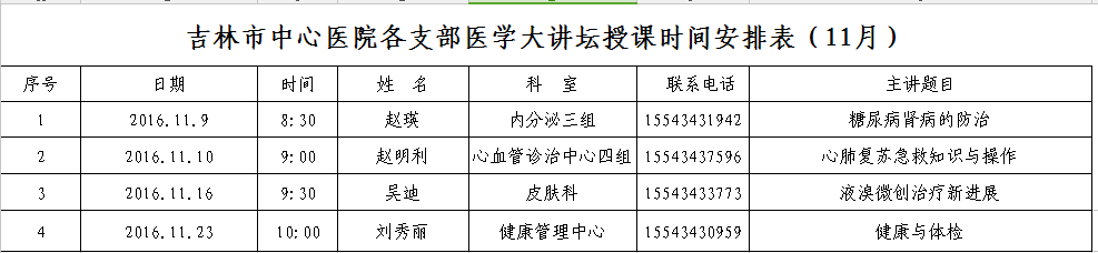 为了加强广大百姓的健康保健意识,牢固树立健康防胜于治的理念,医院定期在心脑血管病楼一楼大厅组织开展《中心大讲坛》健康教育活动,请广大患者随时关注、积极参与。11月讲座信息如下,详细内容请关注医院微信平台、官方网站及医院各LED大屏。