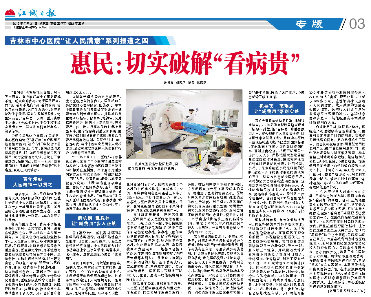 为逐步清除这个毒瘤,4年多来,中心医院始终把“看好病”当成改革发展的根本指向,这个“好”中就含有医疗费用的合理性。今年,医院改革再度向深度推进,以“如何为患者减少医疗费用”大讨论活动为统领,全院上下群策群力,深挖内涵,推出一系列“减费用”措施,目标直指破解“看病贵”这个难题,真正让人民满意。