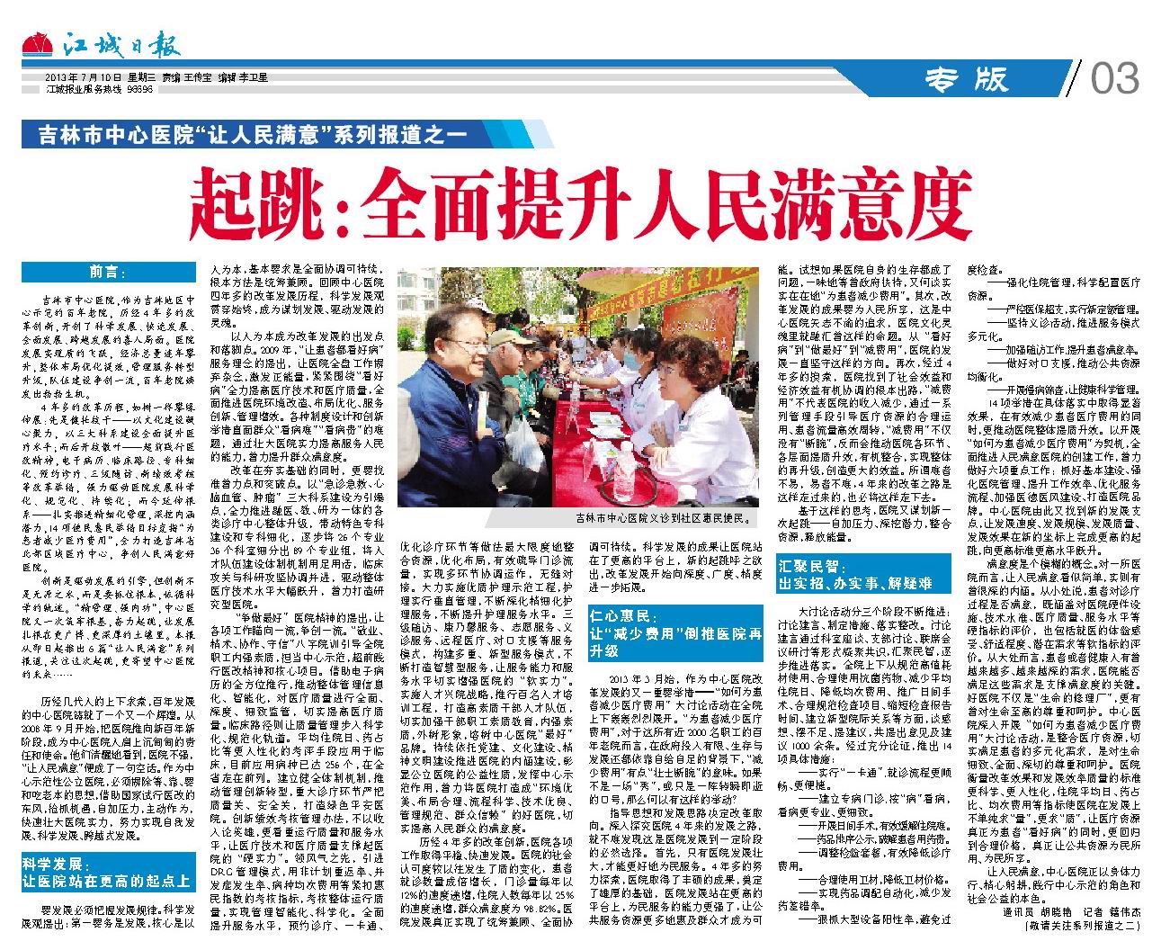 吉林市中心医院“让人民满意“系列报道之一