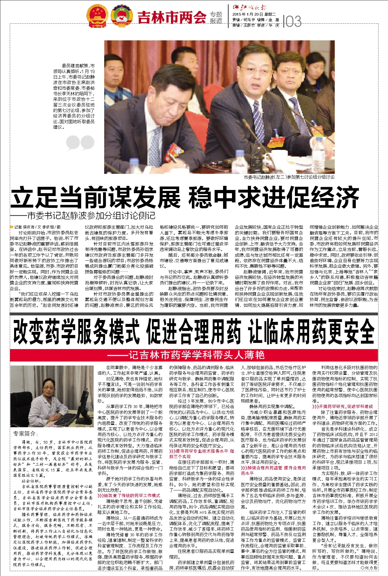 为实现科、教、研一体药学工作模式,每年承担高校学生的实习工作,为高校学生提供了药学实践的场所。开展全市药事质控工作:制定吉林市药事质控标准,积极开展全市药学培训工作,举办市级药学学术会议4次,推动吉林地区医院药学工作的发展。