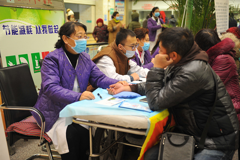 义诊通知发出后,众多江城市民顶着寒风来到义诊现场,早早在义诊台前排起长队。中医科主任杨世红,主任医师国艳及其他医务人员为市民们一一把脉,耐心解答市民疑问。专家们通过望闻问切为大家开出适合自身情况的中药处方,还为市民们准备了中医知识的宣传单。