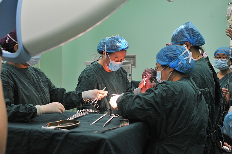 医院得到消息后立即启动医院联动机制。副院长岳东民立即联系产科、医务科,一方面医务科与产科、重症监护病房、输血科、手术室等相关科室进行联络,确保患者转来前准备到位,应急有序;一方面产科主任张雁接到消息后,立即赶往医院,同时联络当晚值班医生刘晓辉提前了解患者基本情况和病情现状,在患者入院前帮助其完成了住院手续,尽量缩短急诊手术前的准备时间,最大程度赢得抢救成功的机会。患者到达后,医院立即开通危重孕产妇急救绿色通道,直接将患者送达手术室,患者的急救手术在大年夜的22:00开始了。患者被送入中心医院前,保健院曾提出为保住患者生命切除子宫的建议,但是张雁主任坚持“尽量为女性患者保全女性器官”的理念,承担着手术难度和手术风险剧增的压力,为患者保住了子宫。凌晨3点多,手术结束了,协助手术的住培医生累得脸色惨白,张雁主任和刘晓辉医生面上也都是掩盖不住的倦色,但患者的生命保住了,子宫更得以保全!医患几人就这样度过了一个难忘的跨年夜。