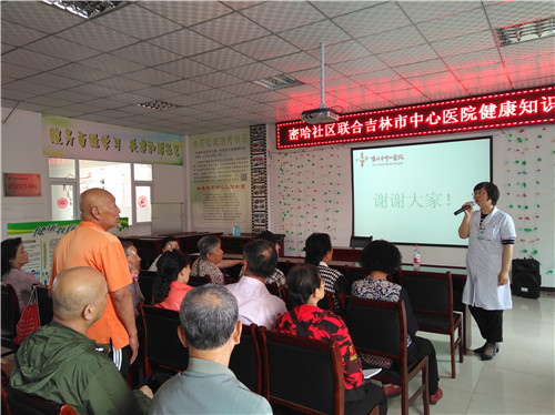 2017年8月24日,中心医院第一次联合新闻媒体走进了吉林市万达社区,为那里的居民们进行了一系列健康讲座,主动把优质的医疗服务送到百姓身边,受到了群众们的一致好评。今年,中心医院再次行动起来,并将讲座的范围扩大到全市各个社区。从5月份开始,高血压门诊主任医师李明子、呼吸科专家苏春芳、眼科副主任医师于波、肿瘤疾病诊治中心6组主任杨亚冰、内分泌科3组主任赵瑛等专家相继来到通潭社区、迎山社区、西大社区、密哈社区、广西社区等地,为居民们带来了相关疾病的预防科普知识,还对居民们关心的健康问题给出了专业的解答,受到了社区百姓一致好评。