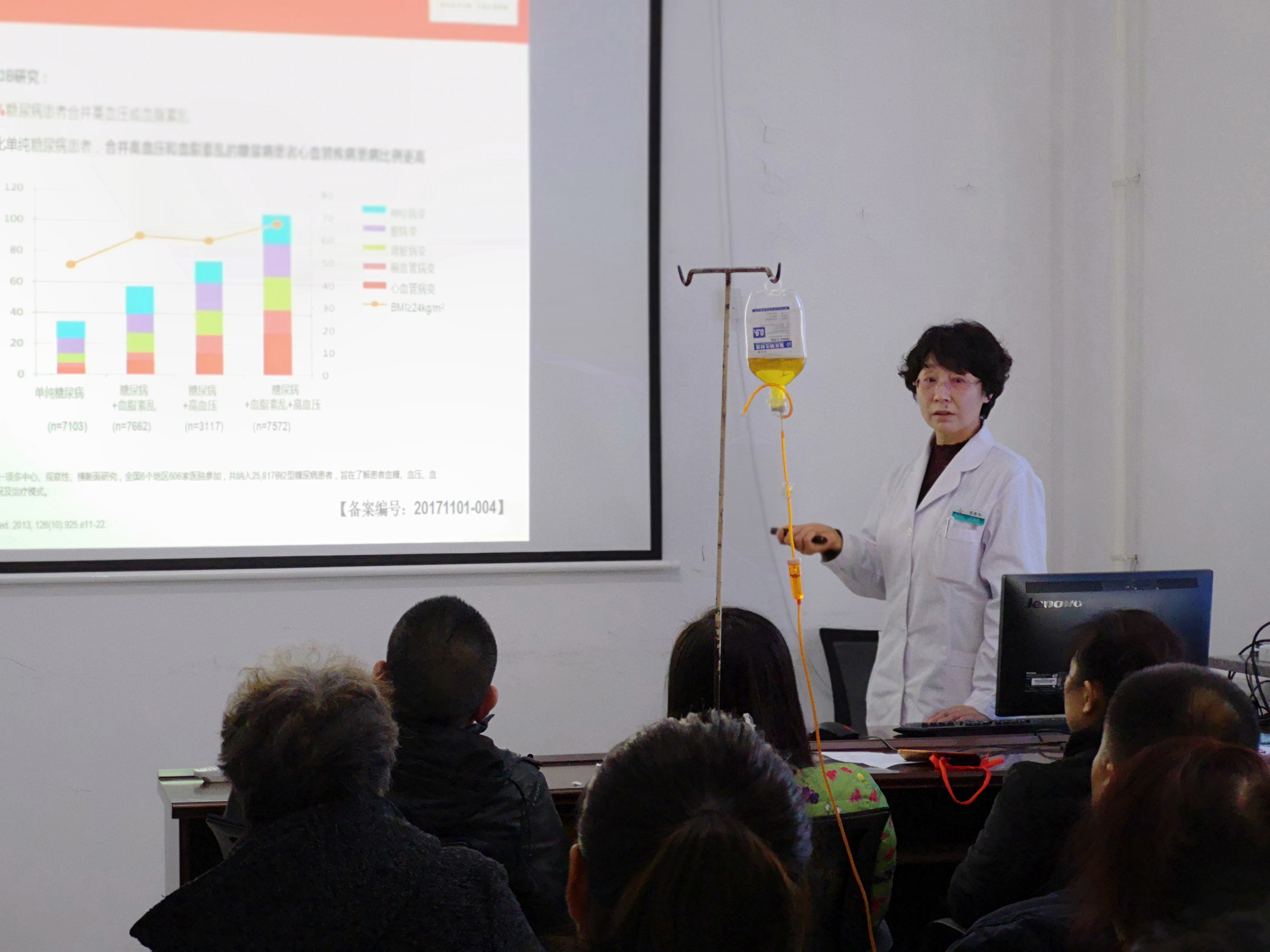就在同一天,内分泌二病区在主任李嘉萍的精心组织下,在医院专科基地培训教室里,为广大市民们带来了一场别开生面的义诊宣讲。活动以“让我们一起关注糖尿病,关爱糖尿病患者”为主题,吸引到约45名市民到场听讲。姜丽明护士长还带领护士在讲座之后为市民免费检测血糖,并发放健康教育宣传材料及小礼品。此次活动,让大人民群众提高了对糖尿病的认识,使患者正确地了解了降糖药物的使用,为正确选择药物提供了依据。参加活动的市民们纷纷表示自己从活动中受益匪浅,希望能多参加此类活动。