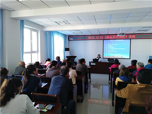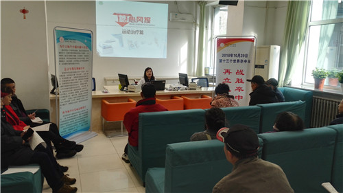10月10日,高血压门诊主任医师李明子在2号楼1楼大厅进行了老年高血压病与脑卒中防治常识的专题讲座;10月17日下午,脑血管疾病诊治中心专家王雪梅在健康管理中心为前来聆听讲座的患者讲解了脑卒中的预防和治疗;10月24日,脑血管疾病诊治中心4组主任田峰、营养科宋淑文在世界卒中日前夕,在健康管理中心为前来咨询的患者详细讲解了脑卒中急性期防治和高血压患者的膳食调理;10月29日,脑血管疾病诊治中心6组主任张汉义前往吉林市广播电台为广大听众进行了卒中的专题讲座;10月31日,全科医学科主任柳沙利、中医科副主任医师闫丽娜在健康管理中心为患者讲解了糖尿病患者如何运动及中医预防脑血管疾病;11月1日,随访慢病办与护理部联合选派脑血管病二病区健康管理师粘琼对卒中中心护理人员50余人进行了健康管理师专题培训。