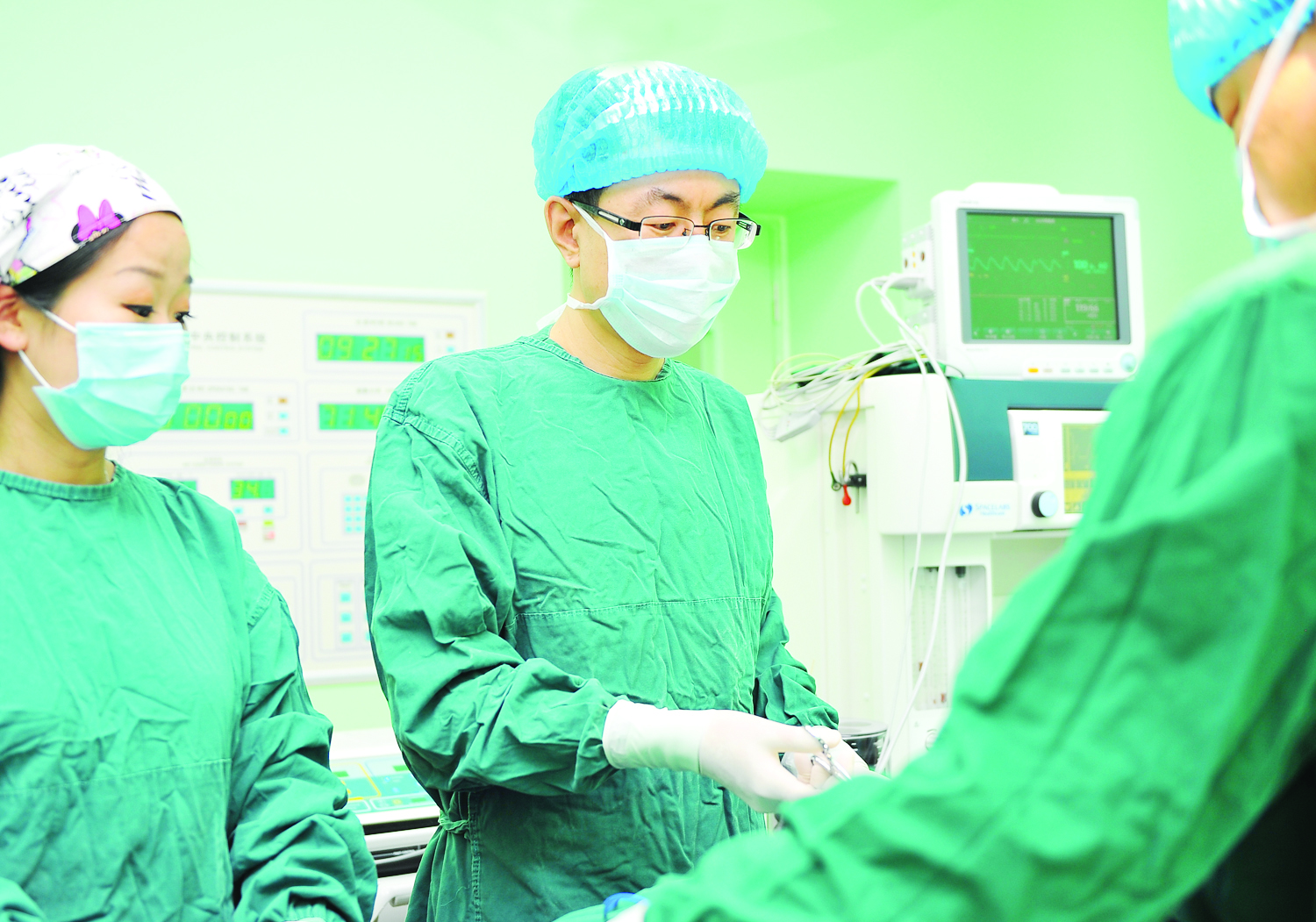张斌副主任(左二)正在为患者手术