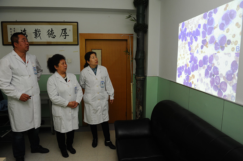 2个月前,33岁的郝女士曾到某医院要行人流手术,在手术之前的检查中该医院发现郝女士的白细胞远远高出正常范围。医院经再次核实后,建议患者到上级医院进一步确诊治疗。当时郝女士觉得自己的病情没有像医院说得那么严重,就在社区诊所给自己开了三天的消炎药。但郝女士的家人却不敢掉以轻心,便带她来到中心医院血液科进行深入检查。血液1组接诊后对郝女士进行了骨穿检查,确诊郝女士患有万分之一发病率的急性白血病髓系M4型,以单核细胞为主,属于出血性白血病,需要立即住院治疗。