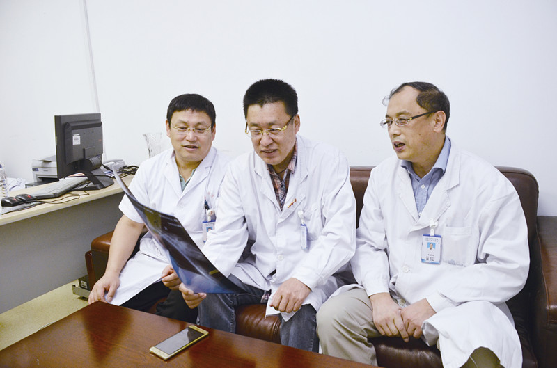 郝天伟主任(右)、任宇副主任(中)、王东明主任(右)共同为疑难病例会诊
